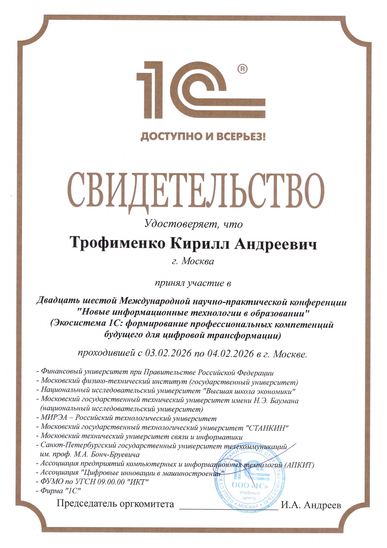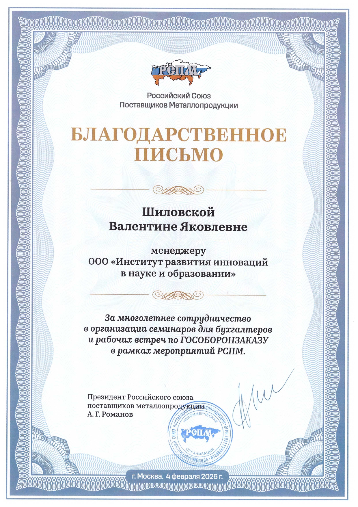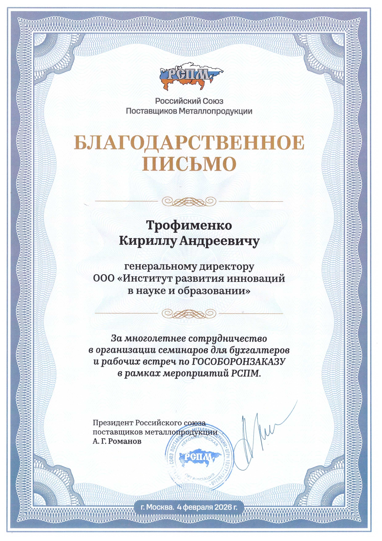 Сертификаты и благодарности